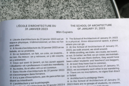 (EN) Texts, posters and extracts of three round-table conversations edited and spatialized by Accattone together with the students and the teachers at ÉNSA Versailles.