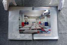 Hand-crafted 24 x 32 cm box with Accattone #5 and five photographic prints by Armin Linke (signed and numbered, unframed).